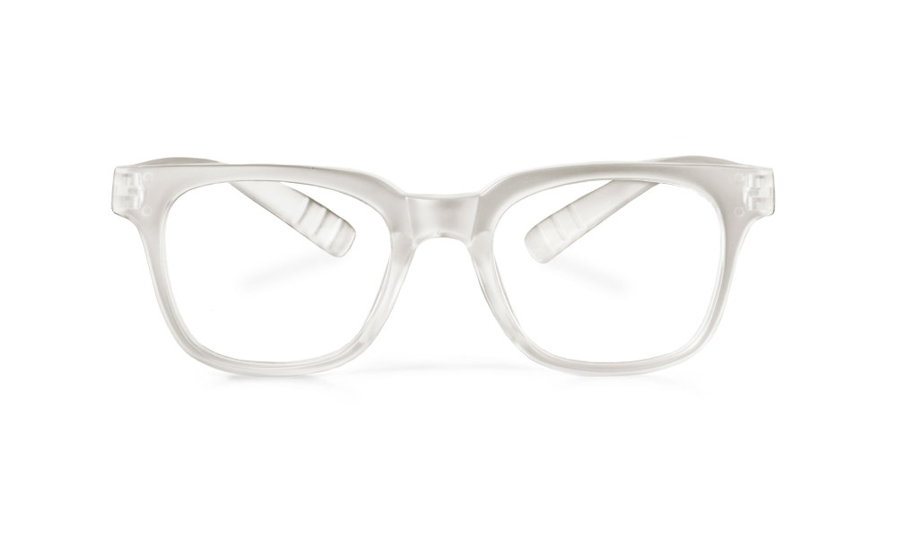 - Transparente, leicht mattiert Lesebrille mit verlängerten Bügeln.
