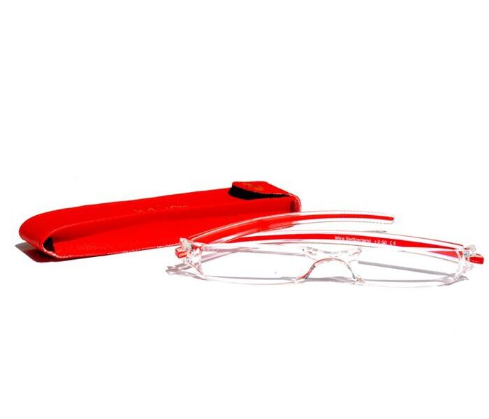 Modische Einstück-Acrylglaslesebrille in frischen Farben mit passendem Etui.